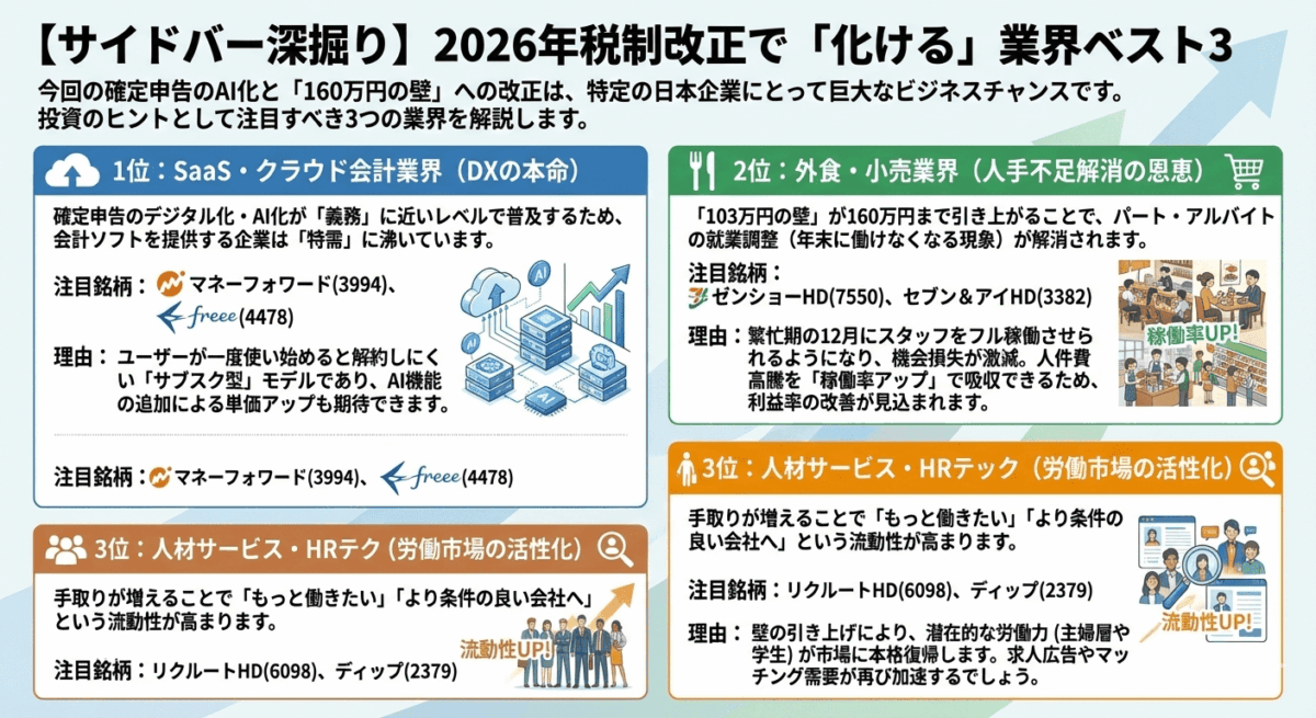【サイドバー深掘り】2026年税制改正で「化ける」業界ベスト3