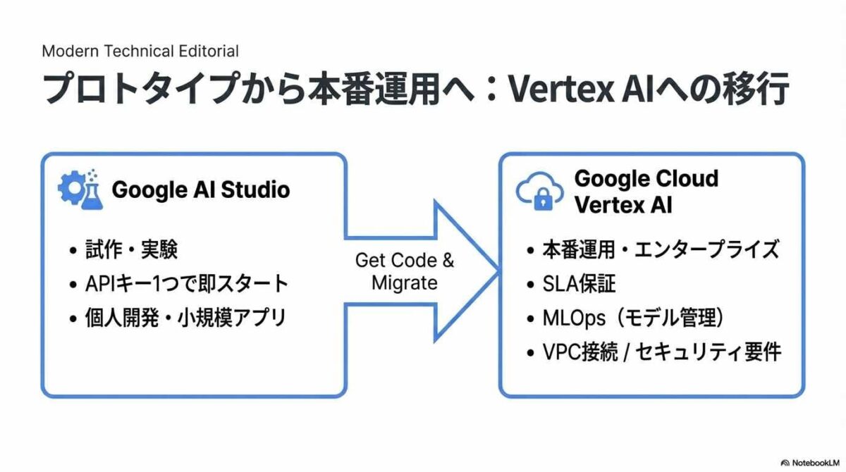 Google Cloudのプラットフォームである「Vertex AI」への移行も選択肢となります。より強固なデータ保護とセキュリティを備えています。