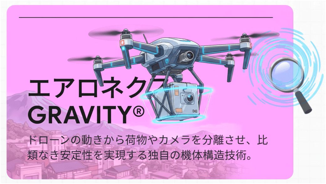 - 強み: 機体の重心を制御する独自の構造技術「4D GRAVITY®」を保有。